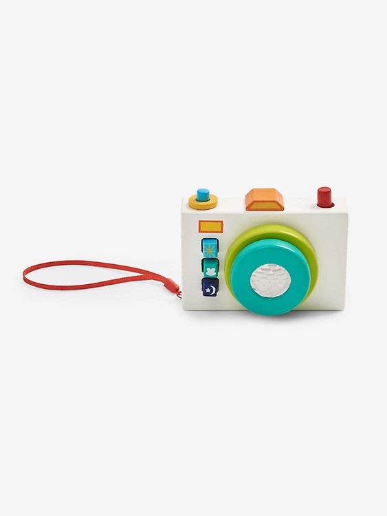 Were ready for our close-up. Its a pretty early learning toy that has lots of surprises in store for baby photographers. The Sound Camera Toy is perfect for little aspiring photographers. Made from smooth beechwood the came. Made from smooth beechwood the camera also comes protected in a lovely silicone case. 3 x batteries LR44 included. The camera is made from beech wood and has a kaleidoscope and capture button that emits the same sound as a camera.